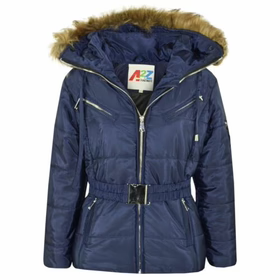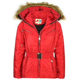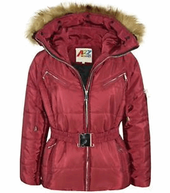 A-2-Z KIDS HOODED FAUX FUR PADDED ZIPPED BELTED TOP WARM COATS