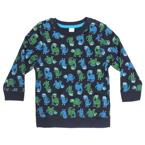 BABY CLUB All Over Dino Print Blue Boys Cotton Fleece Sweat Shirt