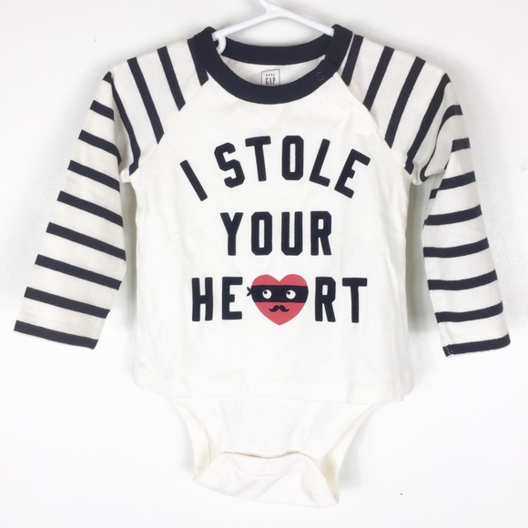 BABY GAP BLACK/WHITE STRIPE WITH HEART LOGO ROMPER 26