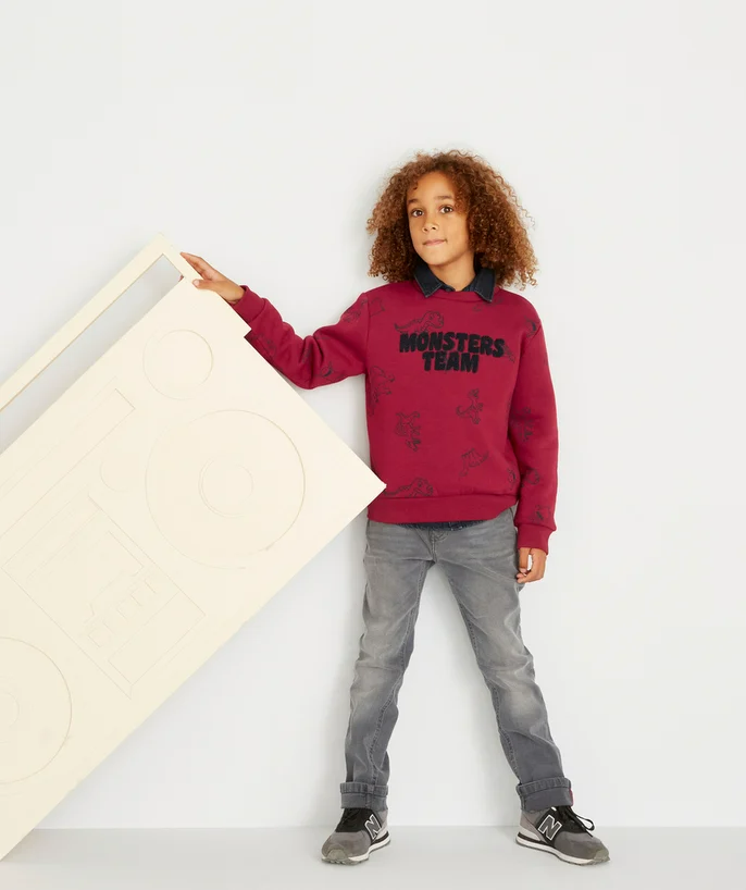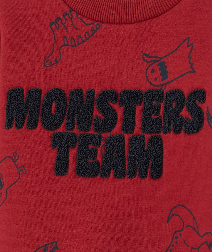 BOYS DARK RED MONSTERS TEAM RECYCLED FIBER SWEATSHIRT