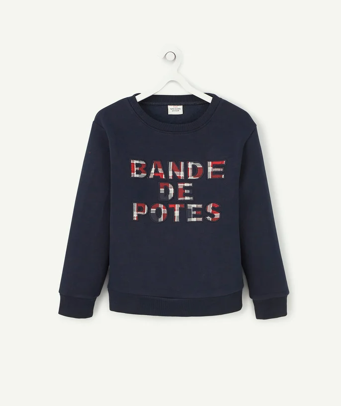 BOY’S NAVY BLUE SWEATSHIRT WITH EMBROIDERED MESSAGE