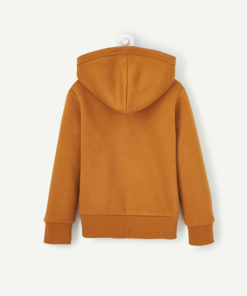 BOY’S OCHER ZIP-UP CARDIGAN WITH HOOD AND KANGAROO POCKET – MUSTARD