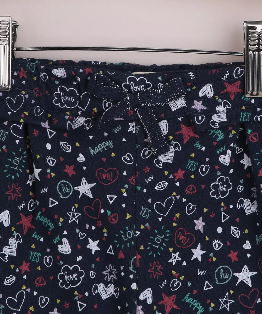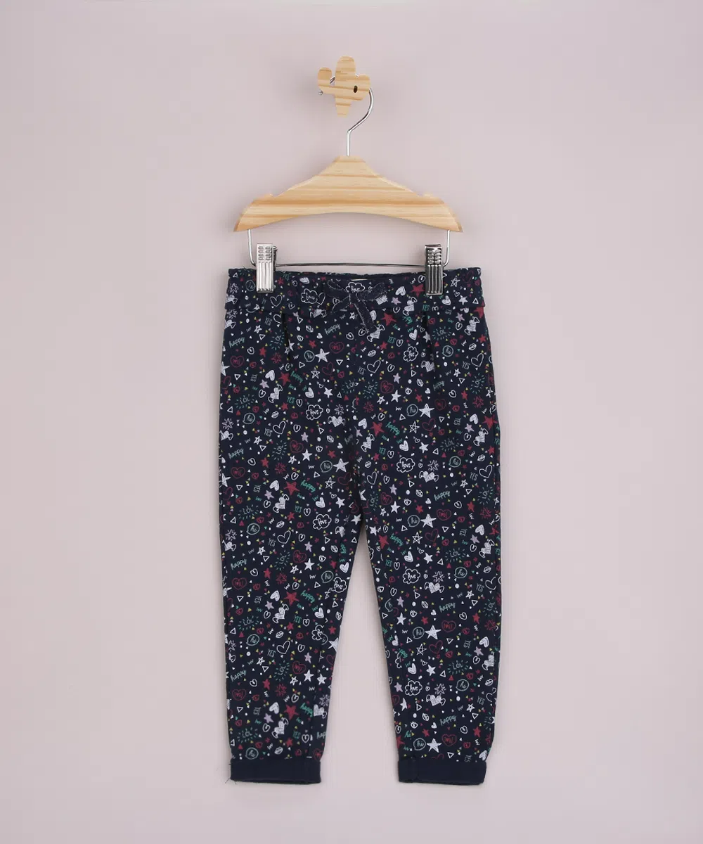 C&A Kids straight pants printed with hearts and stars hem folded waistband