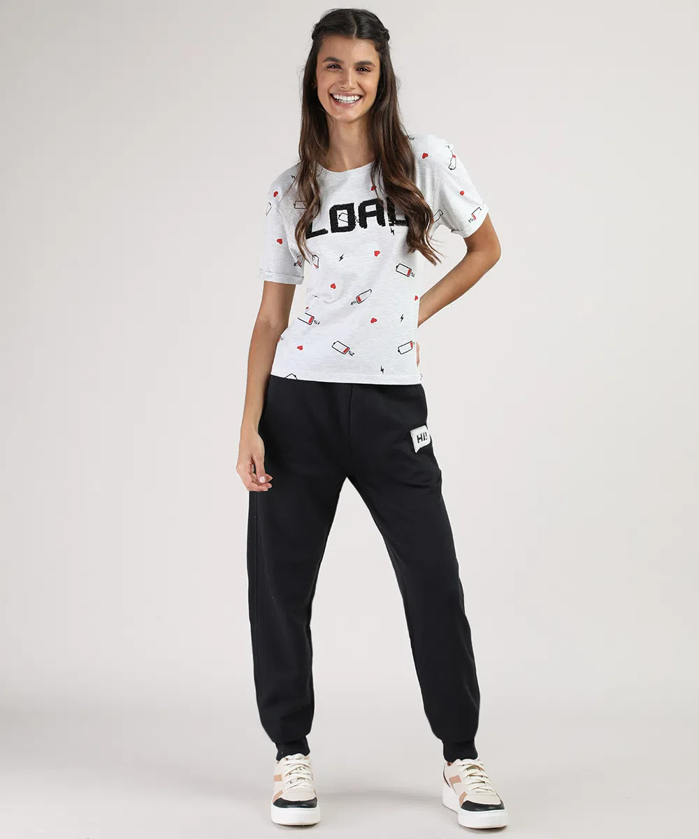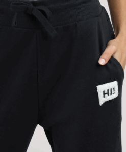 C&A youth pants in embroidered hoodie “hi!” and black pockets