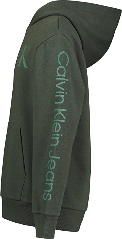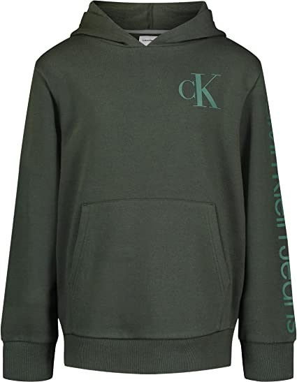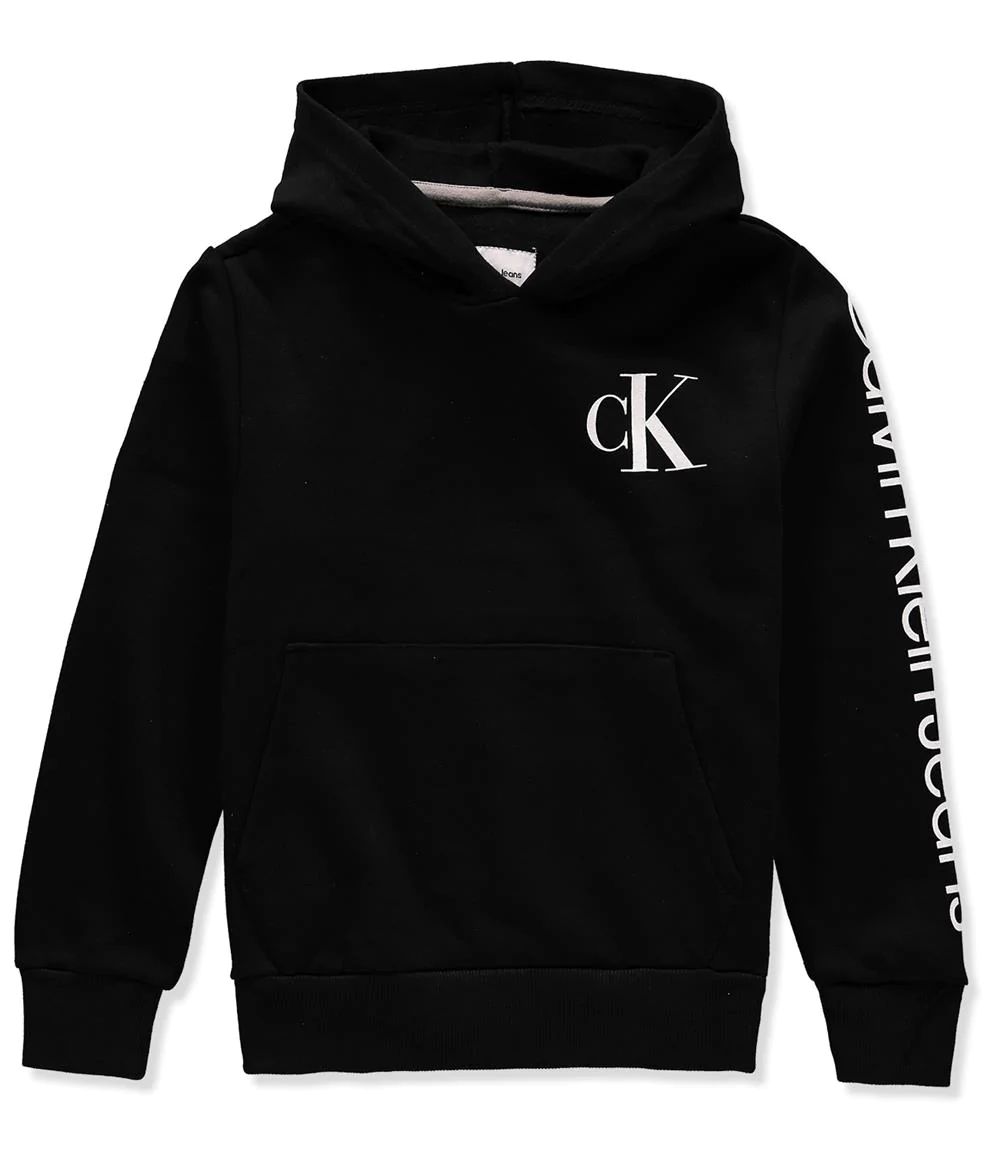 - Kangaroo Pocket; Calvin Klein Logo on Sleeve