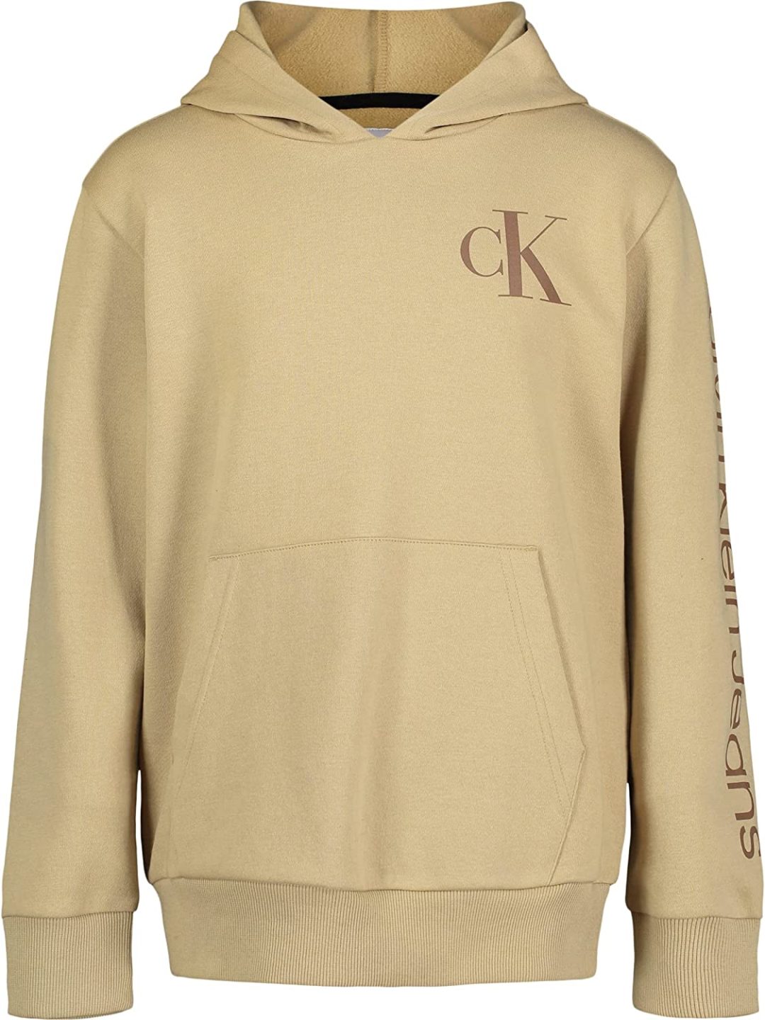 - Kangaroo Pocket; Calvin Klein Logo on Sleeve