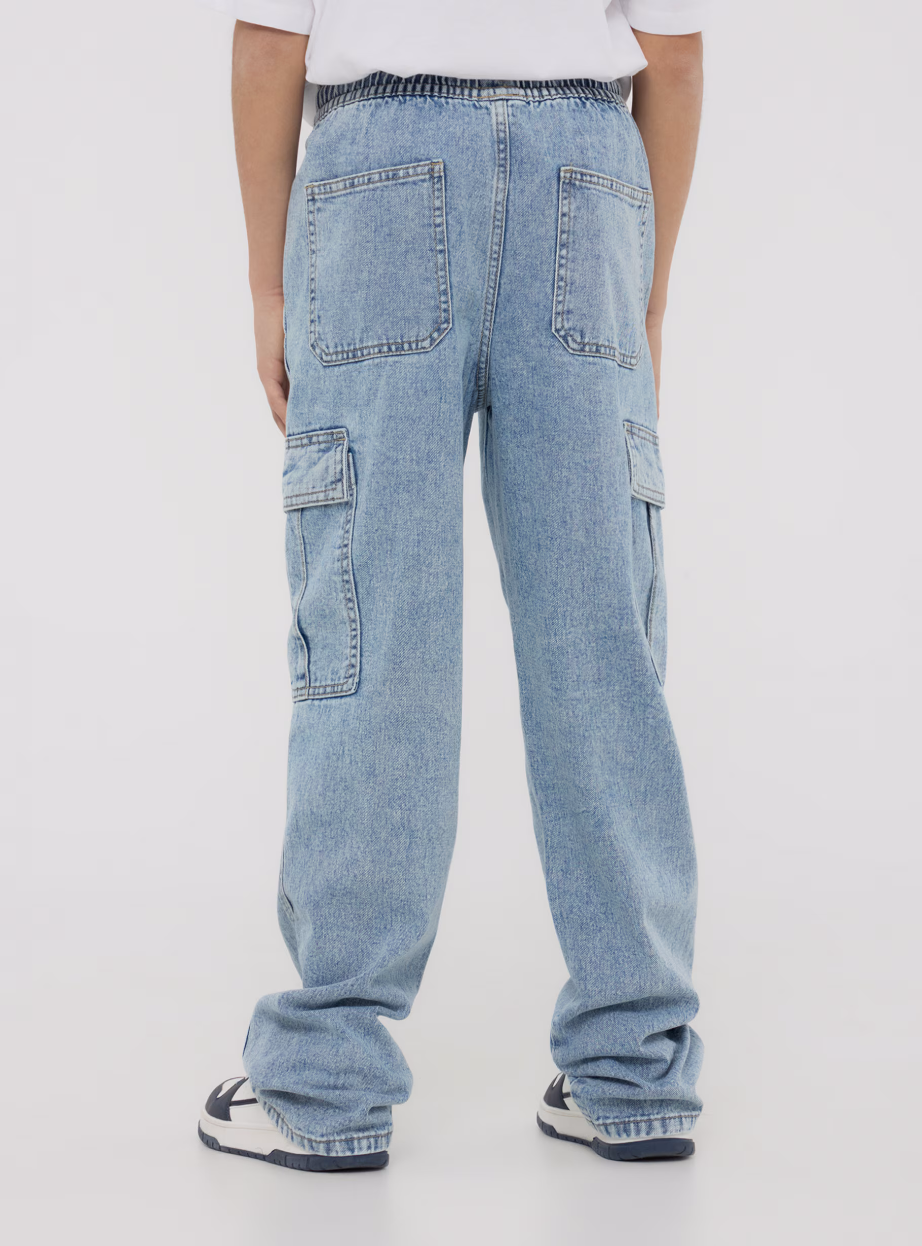 Chapter Young Kids Cargo Jeans With drawstring Washed Blue Denim