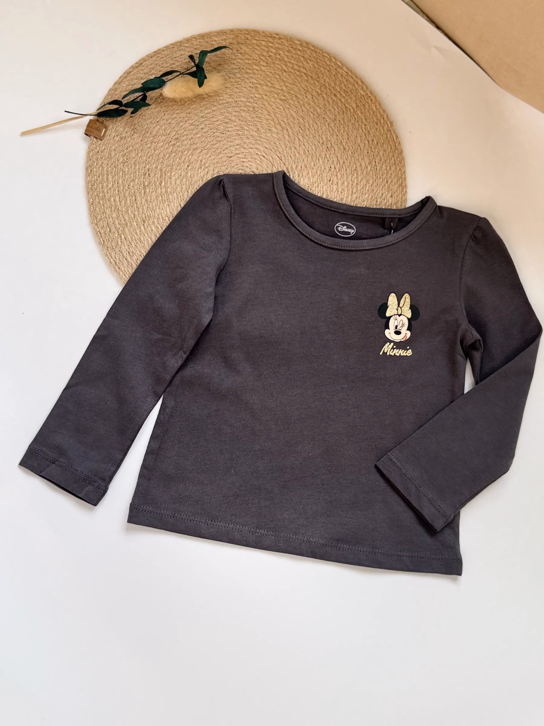Disney Glitter Minnie Logo Full Sleeve T-Shirt Charcoal