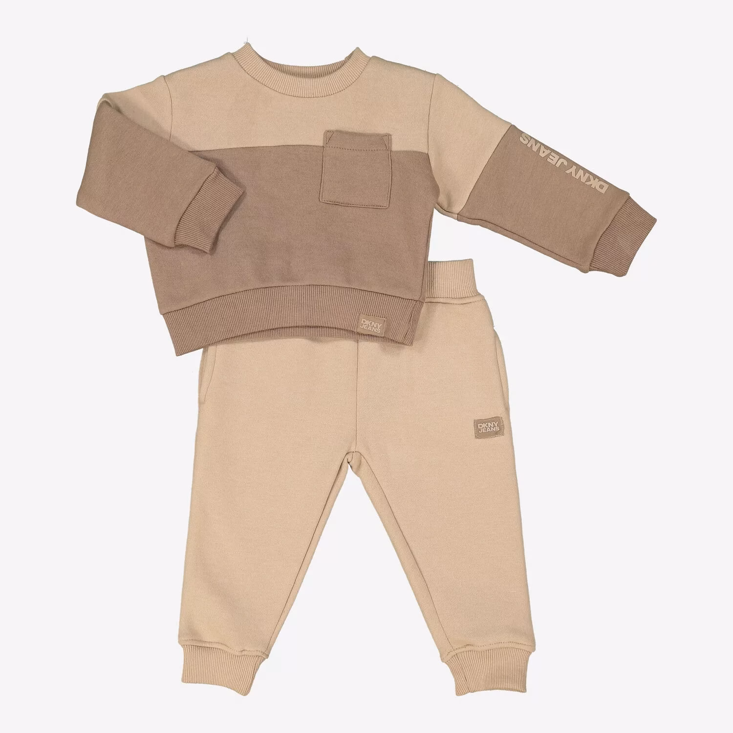 DKNY Kids Fleeced Tracksuit with Front Pocket Khaki/Brown