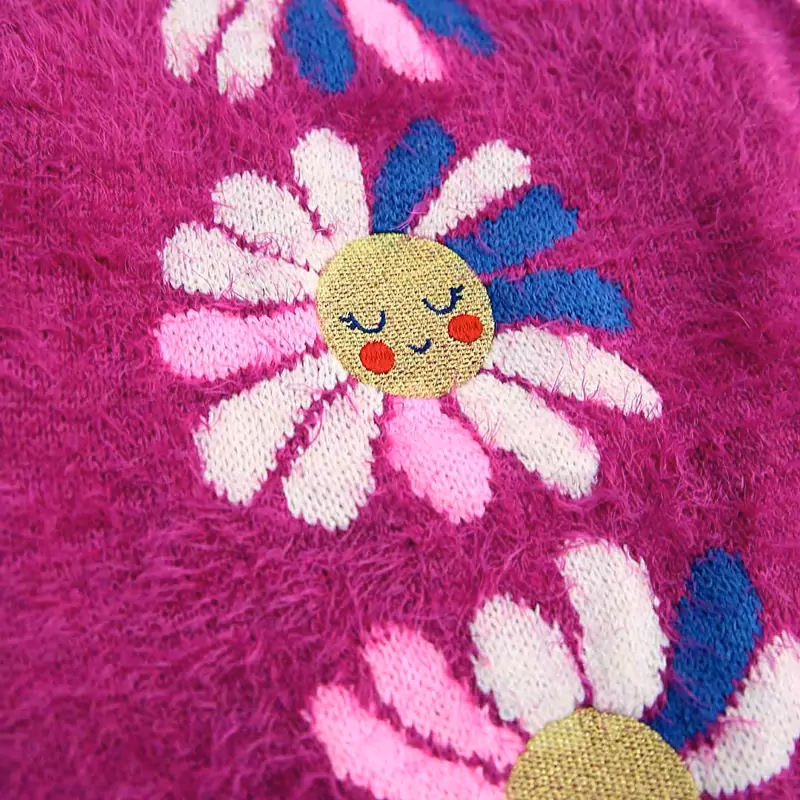 DU Pareil Fluffy Girls Sweater with Sunflower