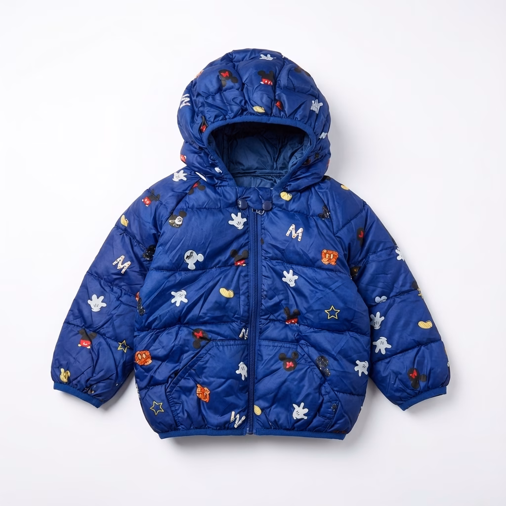 Fables Kids Mickey Mouse Printed Puffer Jacket – Royal blue
