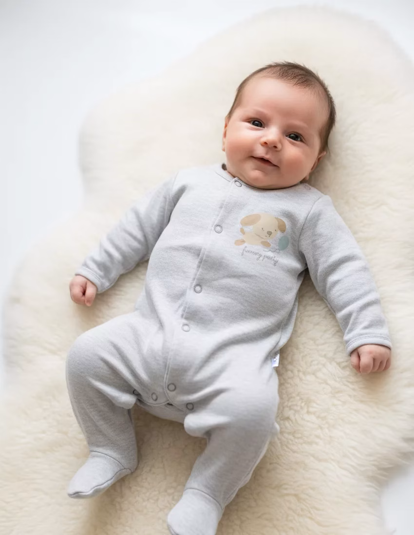 Fagottino Cotton Funny Party Logo Romper Grey