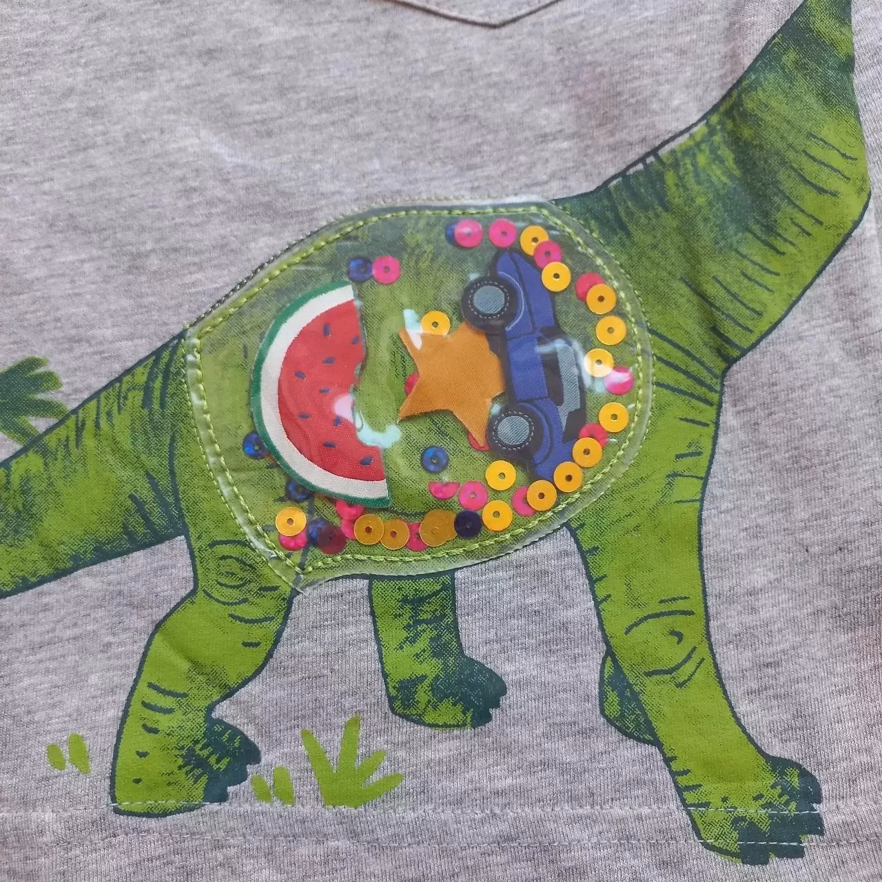 • Detail: Includes a small, functional chest pocket below the “cool” dinosaur.