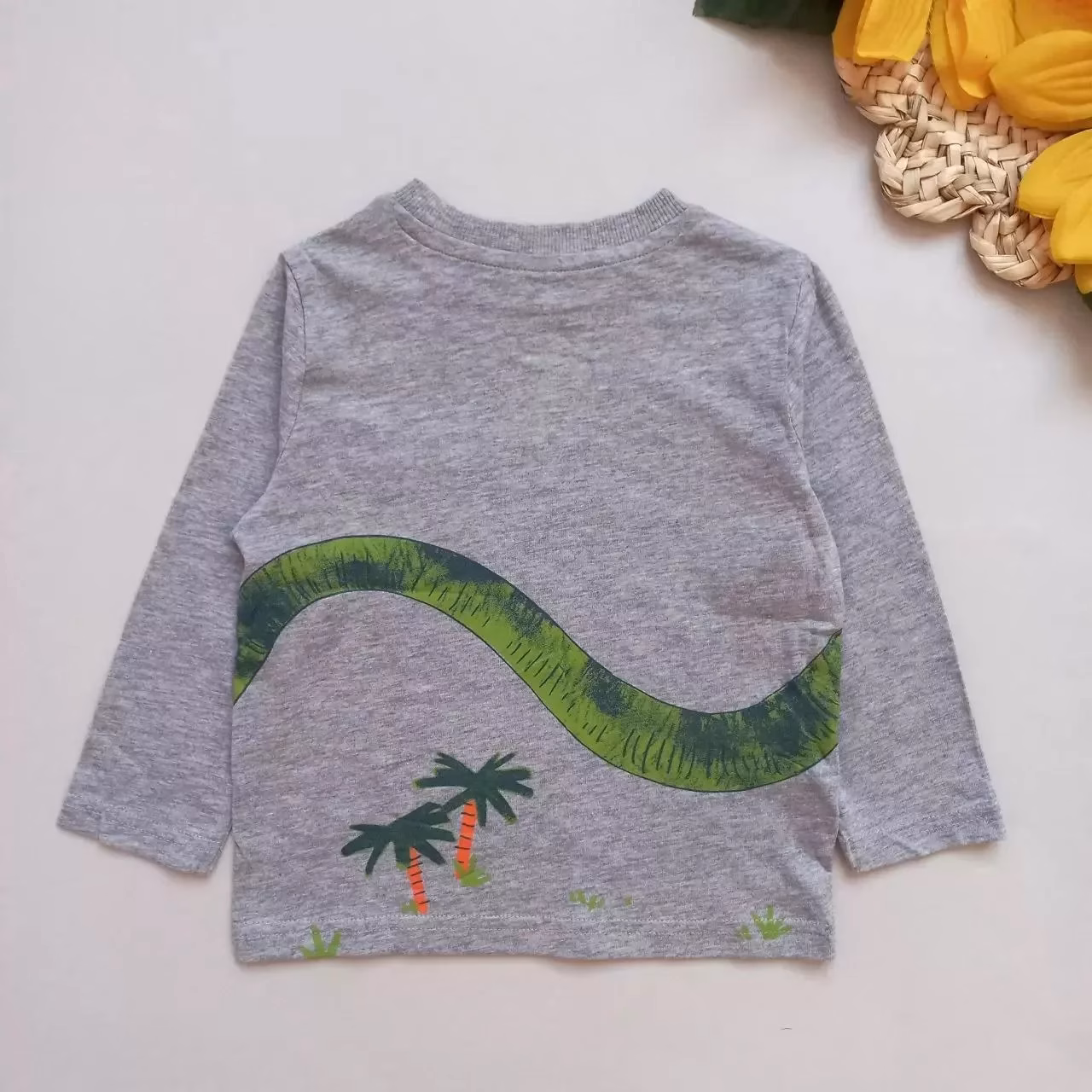 F&F Tropical Duo Dino Printed Full Sleeves Tee Grey