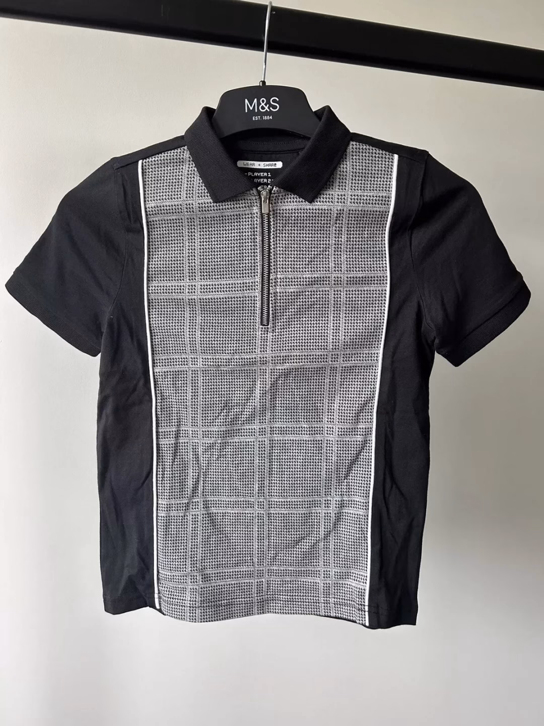 F&F Wear & Share Zip Polo Shirt Black/Grey