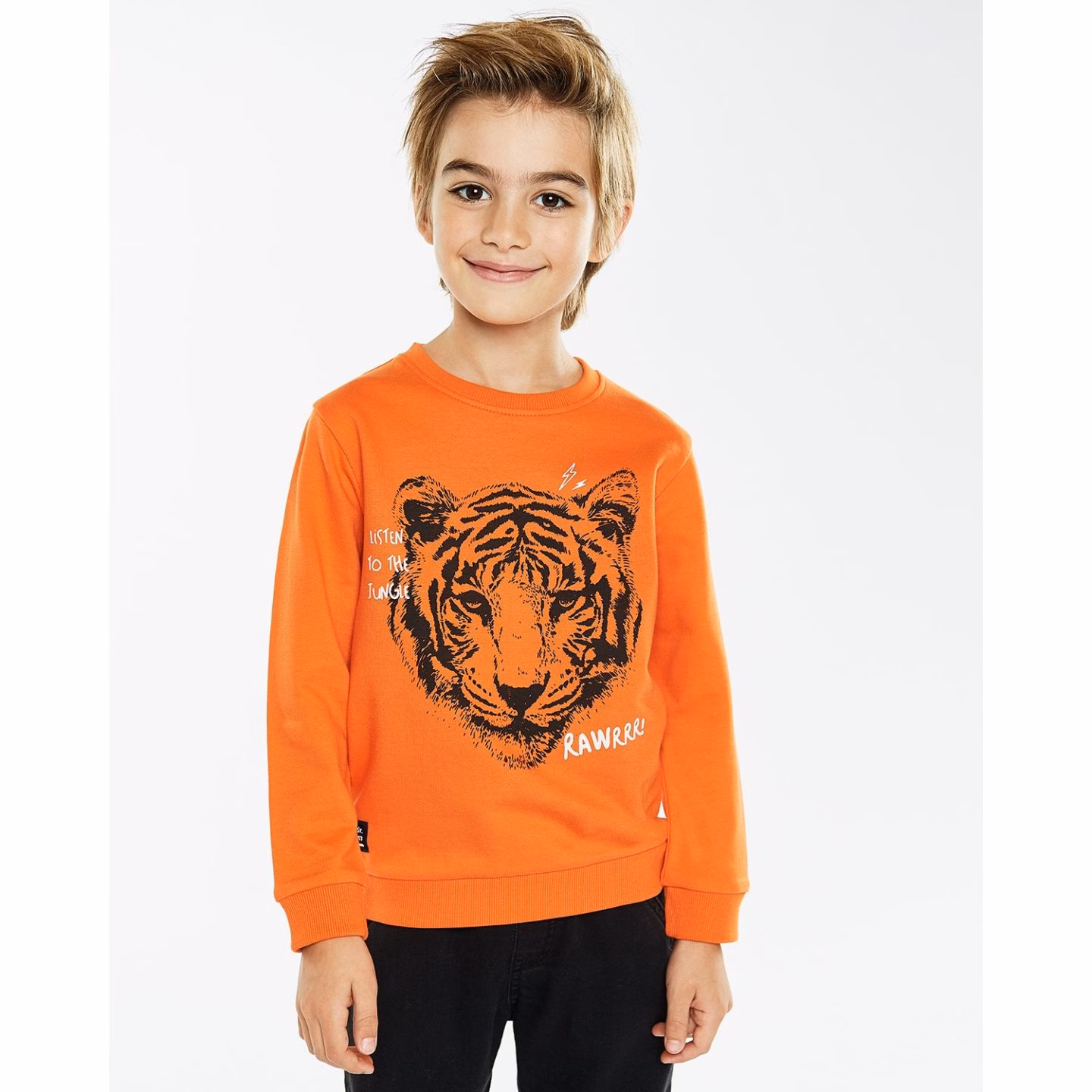 Sweatshirt (sweatshirt) for a boy Futurino orange, decorated with a print with a tiger.