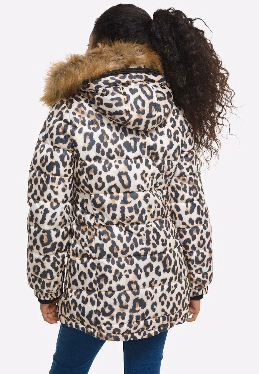 Girls Attitude Leopard Perka Jacket With Fur Inside