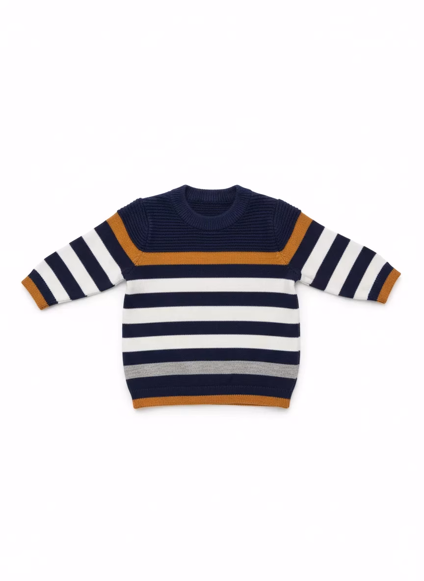 H&M Round Neck Stripes Sweater Navy
