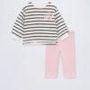 - Both garments are made of stretchy cotton with a soft brushed interior, making this a comfortable set ideal for everyday wear.