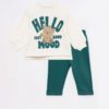 - Both garments are made of stretchy cotton with a soft brushed interior, making this a comfortable set ideal for everyday wear.