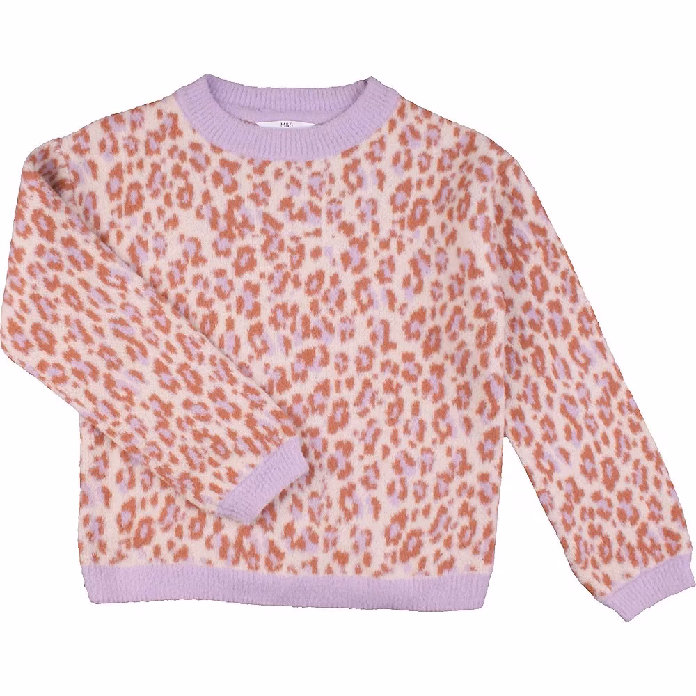 Marks n Spencer Purple Jaguar Patterned Girls Sweater