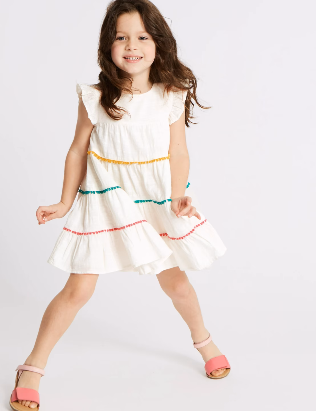 Great for those warm weather days, this children’s dress has lots of pretty frill detailing and contrast trims to create a fun piece. Youngsters will stay feeling cool while looking smart in this cotton dress, thanks to its lightweight and breathable composition.