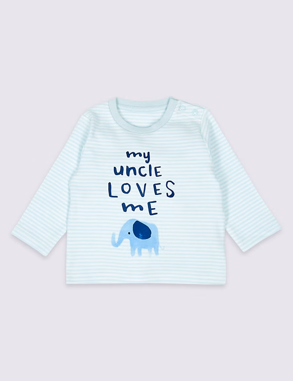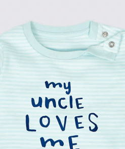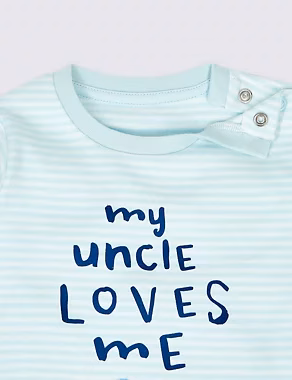 Marks & Spencer PURE COTTON MY UNCLE LOVES ME TOP- BLUE STRIPES