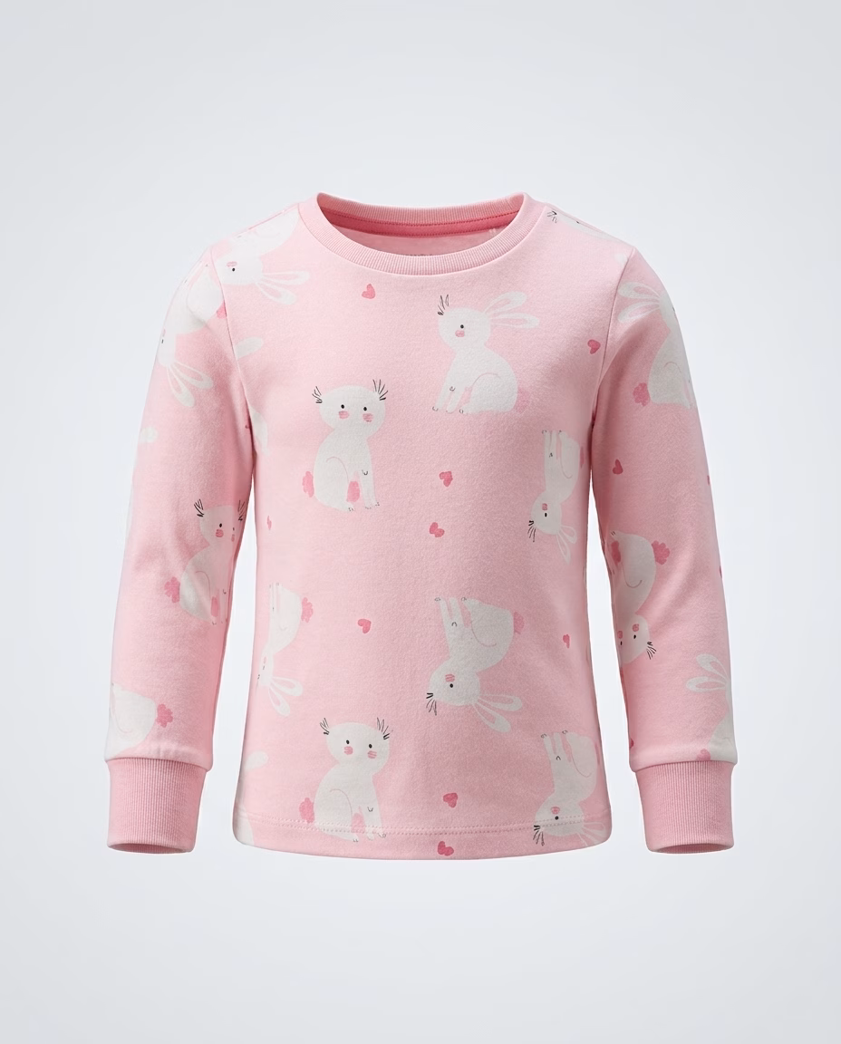 MATALAN Full Sleeves Girls Rabbit Print Tee Pink