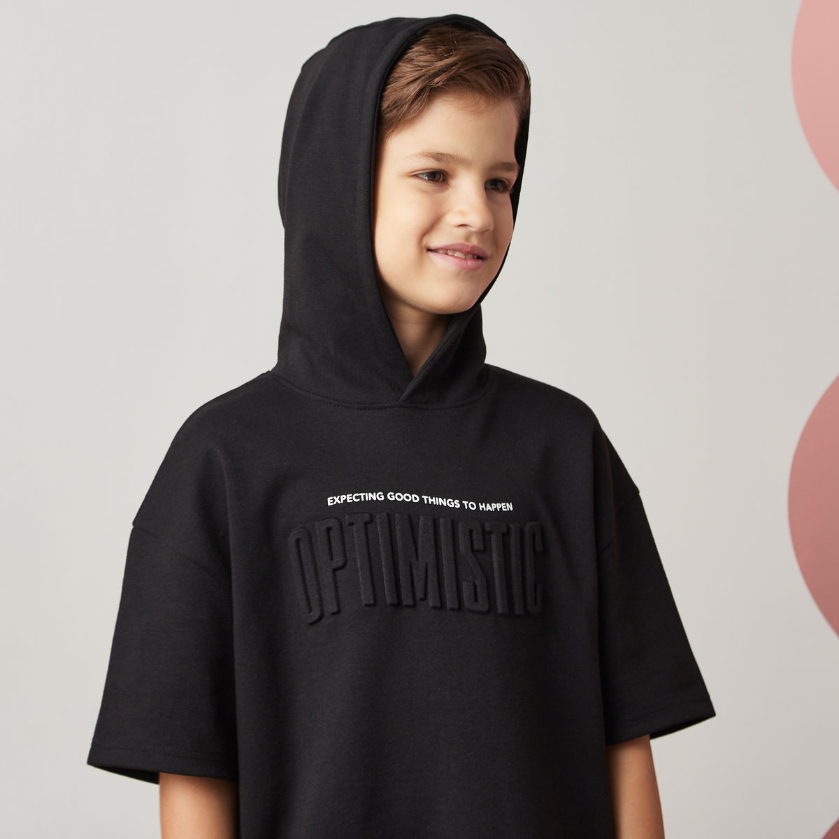 MAX Boys Slogan Print Embossed Hooded Sweatshirt