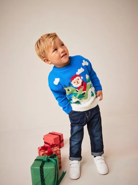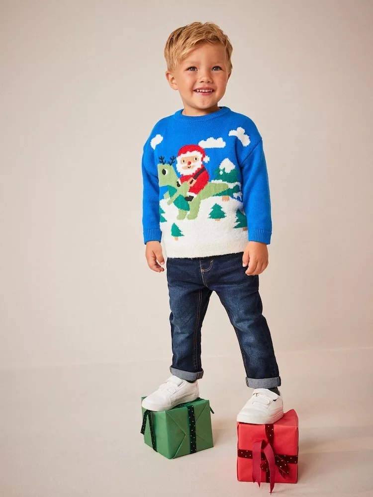 Next Cobalt Blue Santa Dinosaur Knitted Sweater