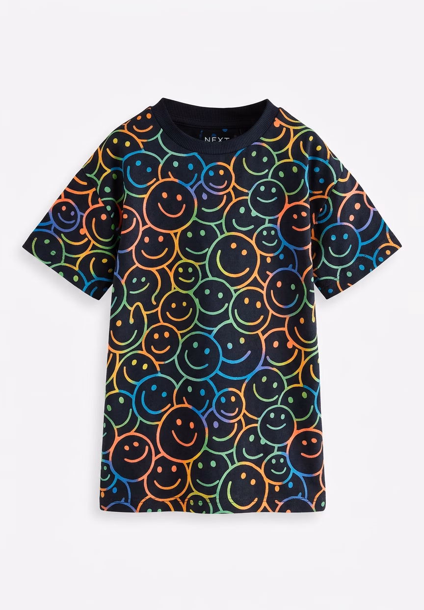 Next Kids Half Sleeves All Over Multicolored Smiley Face Black