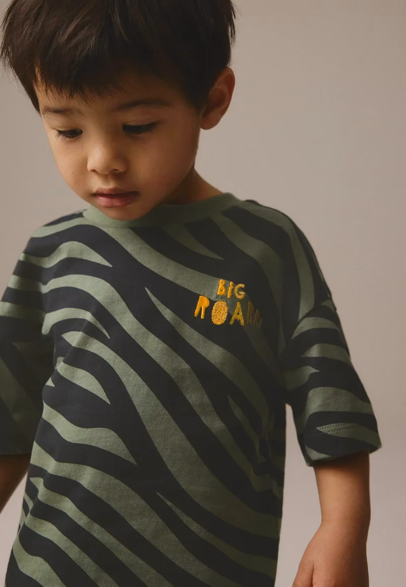 Next Kids BIG ROAR Half Sleeves All Over Striped Dark Green Tee