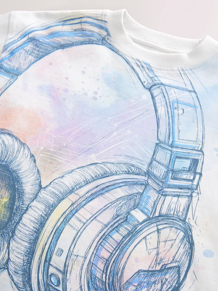 Next Kids Half Sleeves Headphones Art Logo Off White Tee