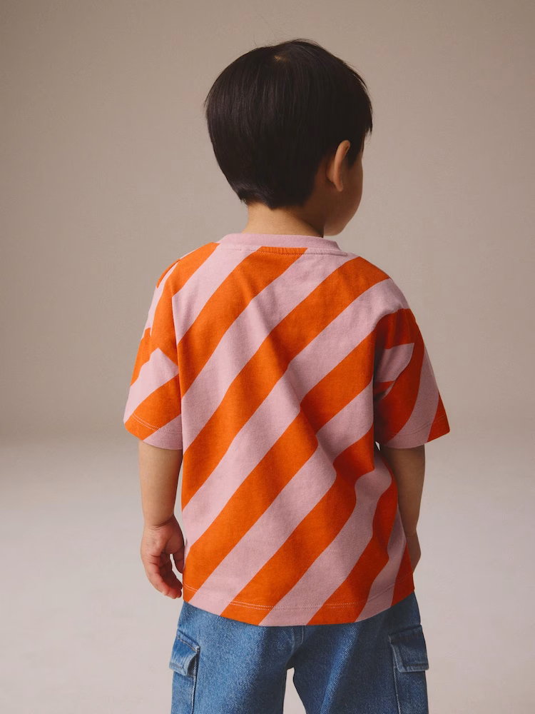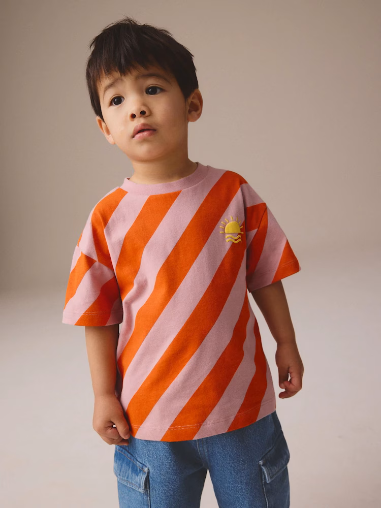 Next Kids Half Sleeves Sunset Logo Orange/Pink Stripes Tee shirt