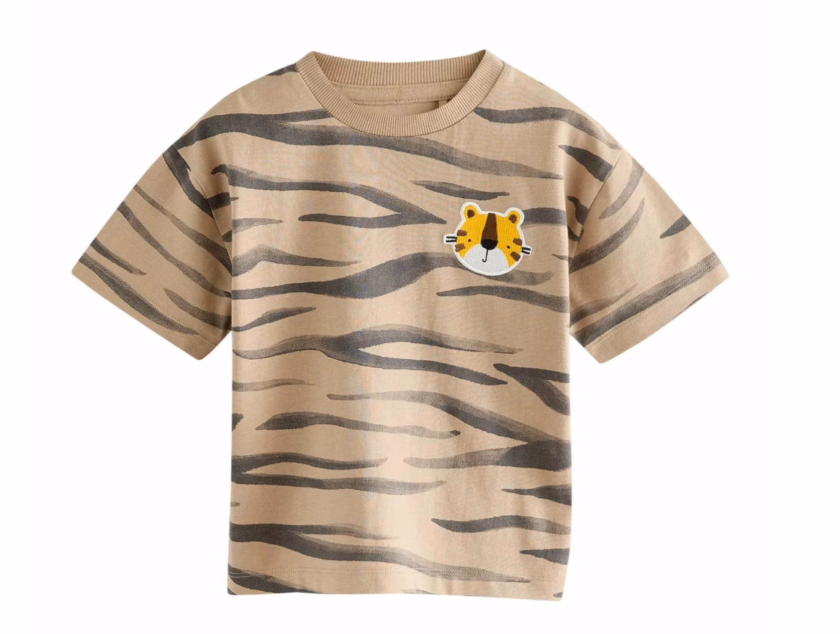 Next Kids Half sleeves Tiger Face Embroidery in Khaki