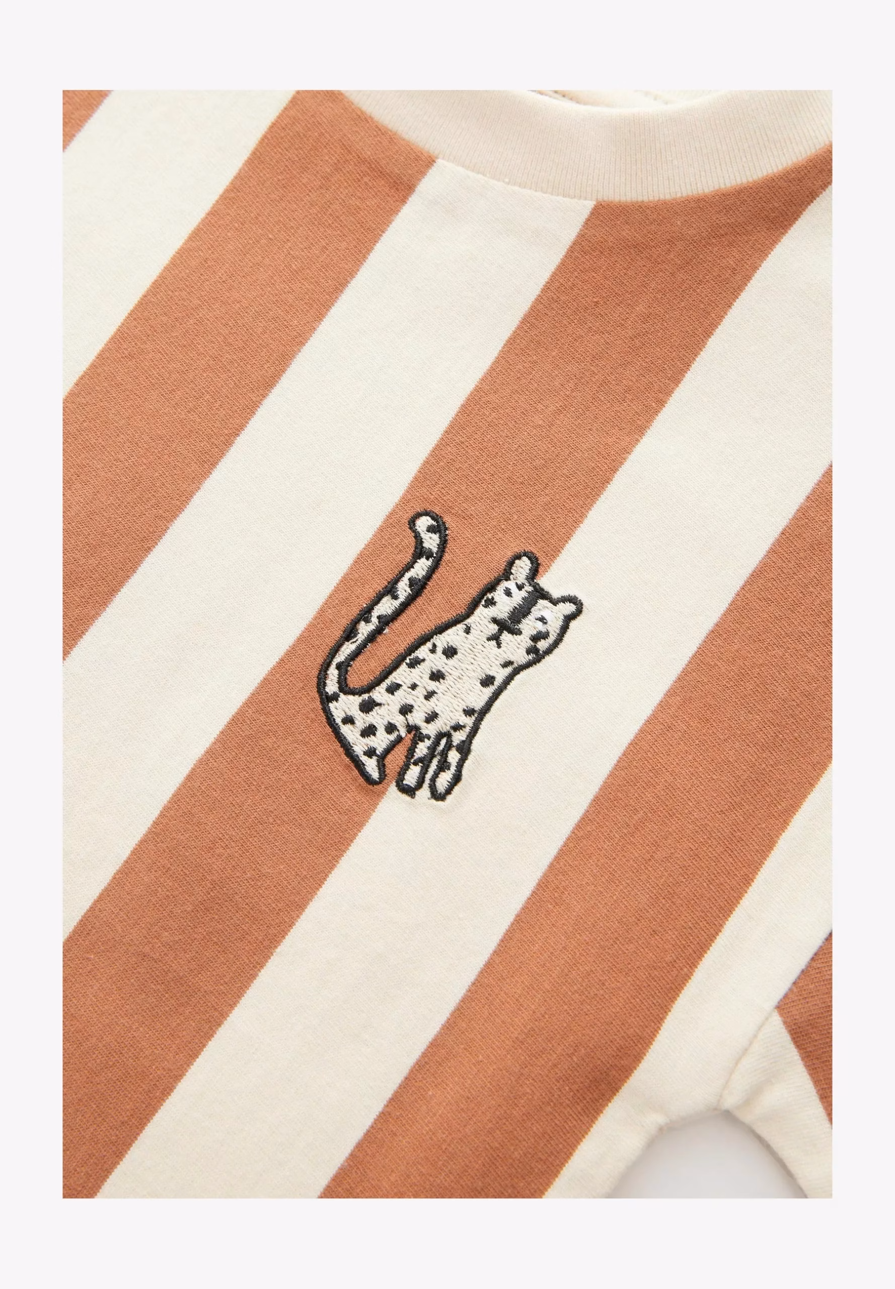Next Short Sleeves Striped Tee Tiger Embroidered Brown/Skin