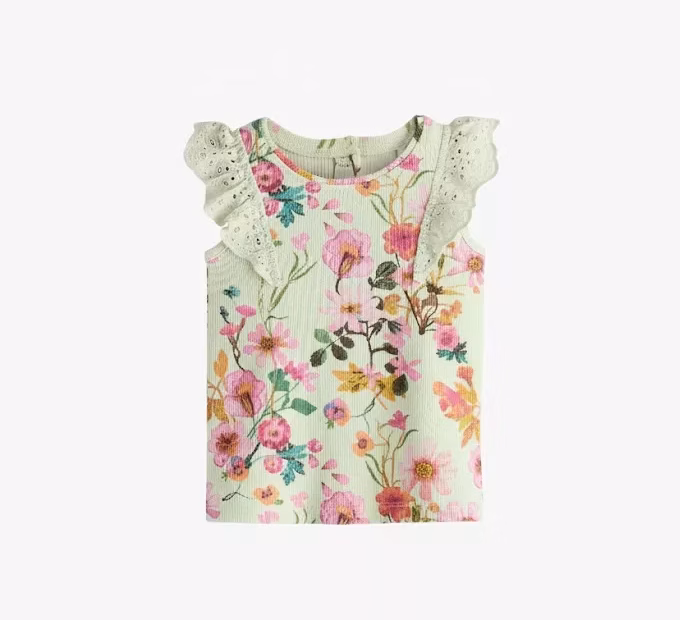 Next Sleeveless Baby Girl Shirt in Sage Green Floral
