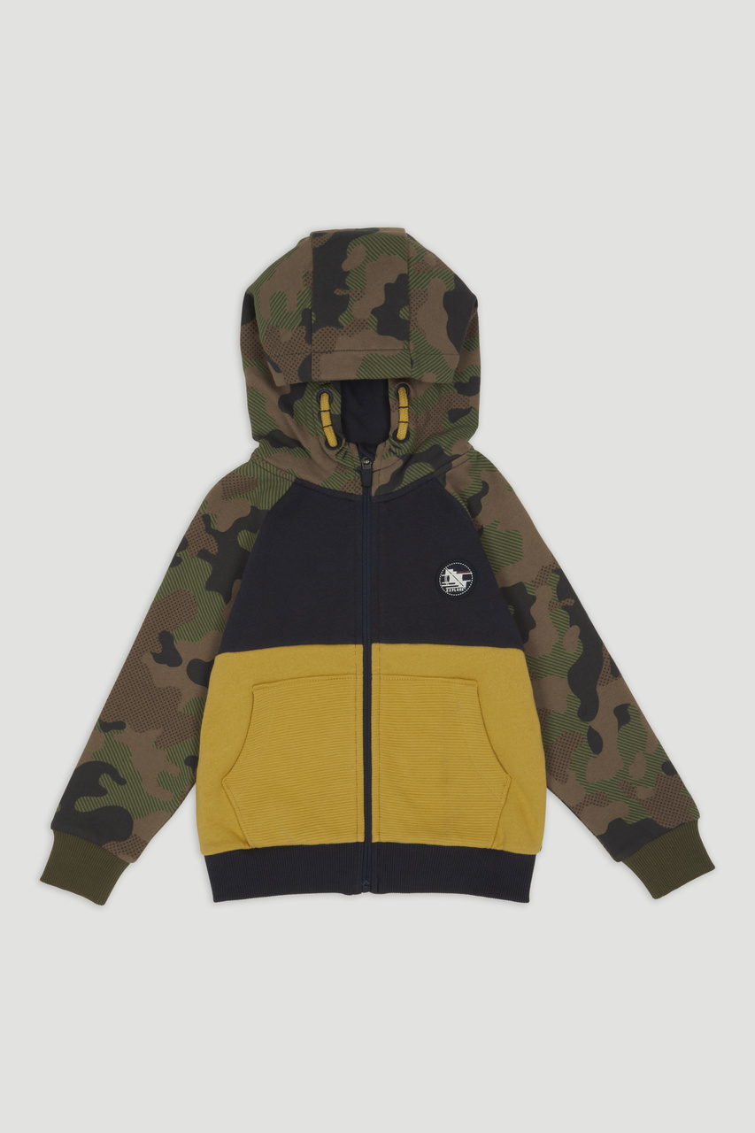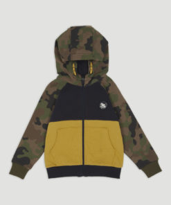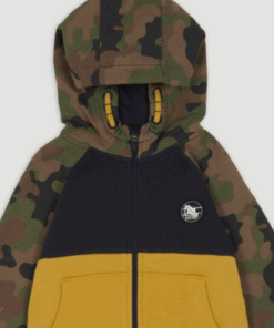 We’ve taken the classic hoodie and switched it up for a cosy comfort that’s great for nursery and playdates. This hoodie come with statement camo print to keep them on trend with ribbed pockets panelling detail and finished with an easy zip fastening and lined hood.