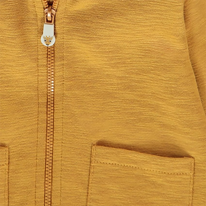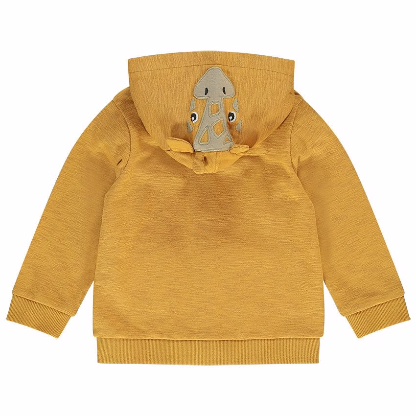 Fleece vest. Long sleeves. Zip opening with giraffe zip on front. Two patch pockets on the front. Elasticated bottom and cuffs. Hood with embossed ears and embroidered giraffe.