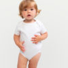 The material used to make the bodysuit is a blend of cotton and other fibers. Cotton is known for its softness and breathability, making it a good choice for baby clothes