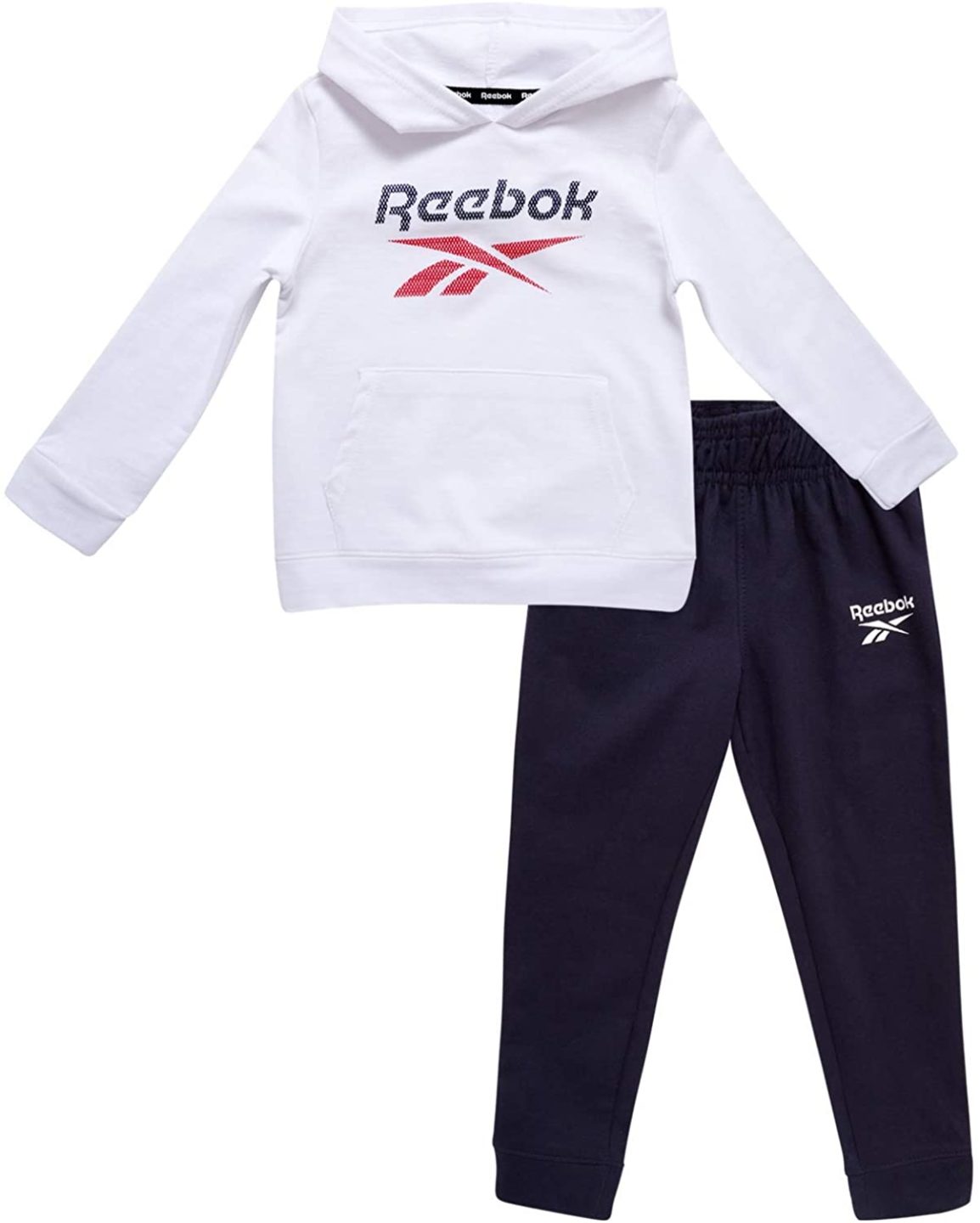 REEBOK KIDS TRACKSUITS – ATHLETIC FLEECE HOODIE AND JOGGER – White/Navy