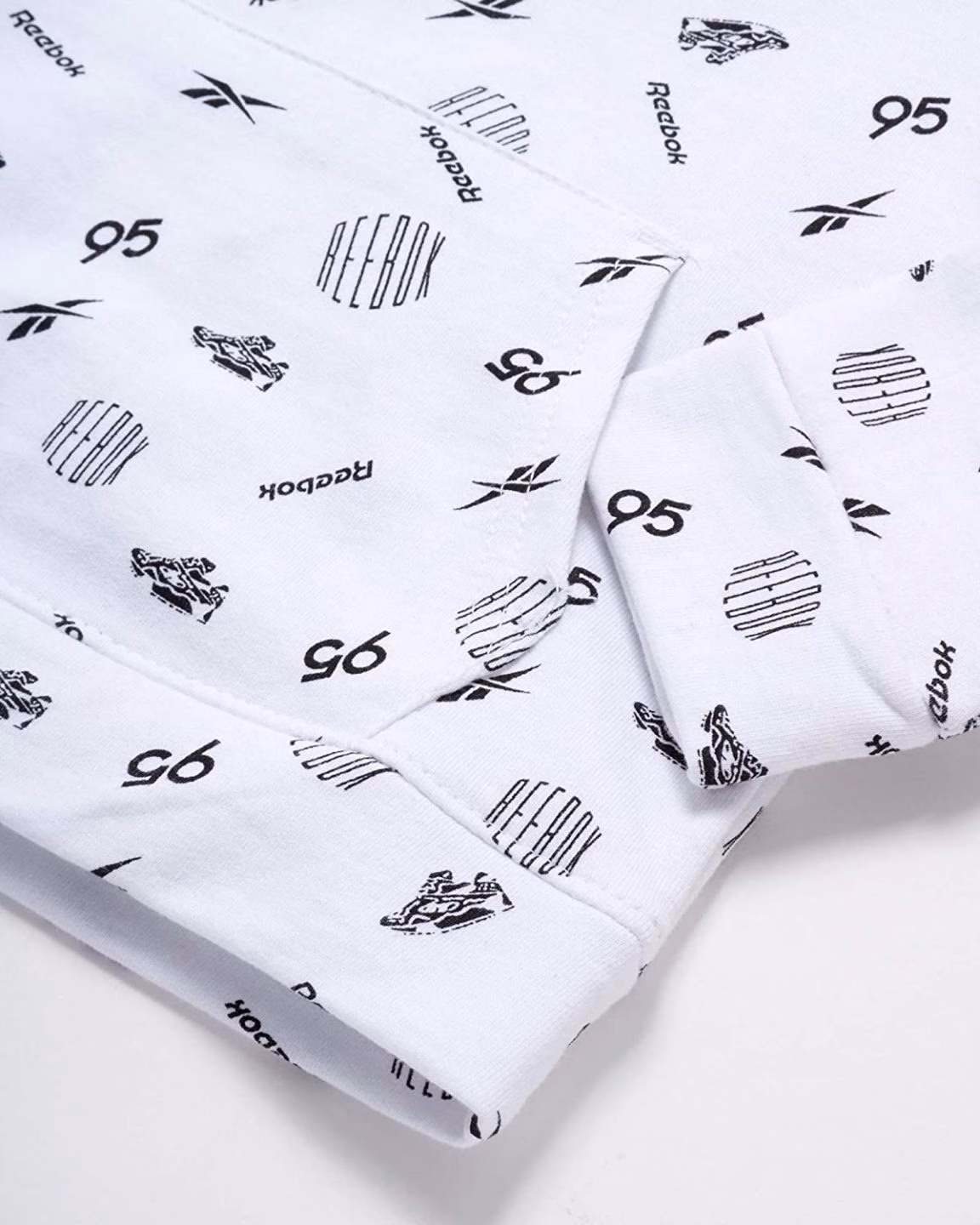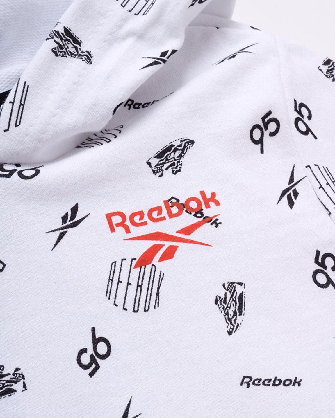REEBOK KIDS TRACKSUITS – ATHLETIC FLEECE HOODIE AND JOGGER – White Printed