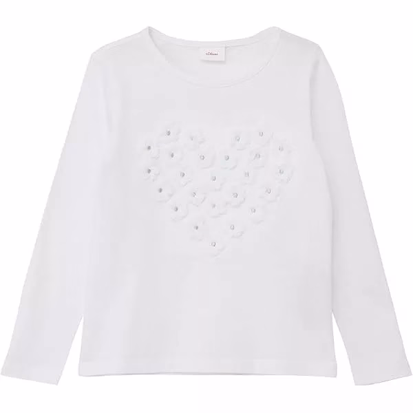 S.Oliver Full Sleeves White Tee Heart logo with flowers