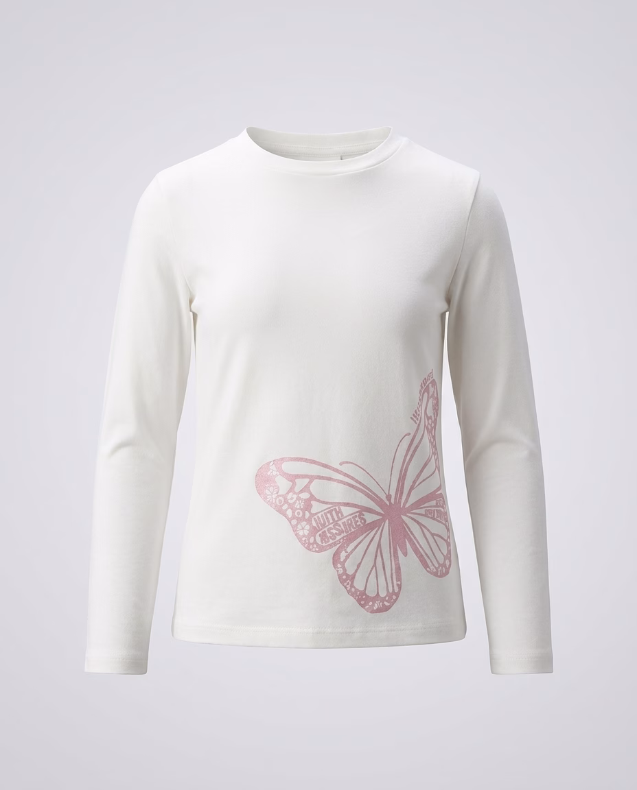 S.Oliver Glitter Butterfly Logo White Full sleeves Tee