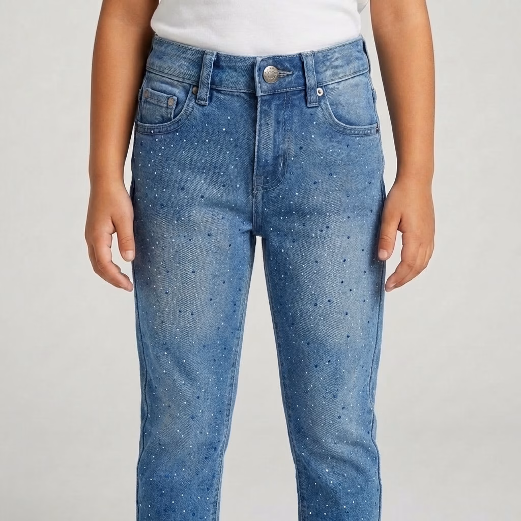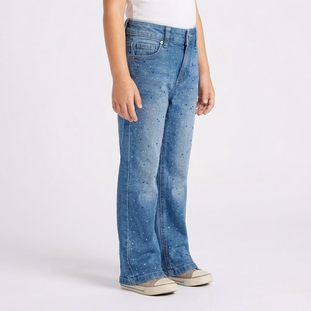 SARA Girls Relaxed Fit Rhinestone Denim – Medium Blue Wash