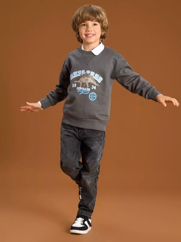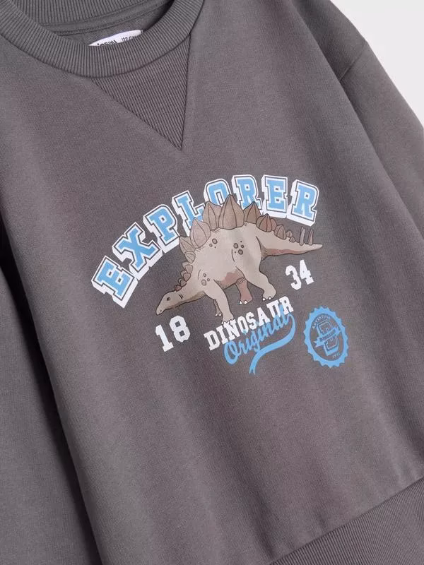 Sinsay Boys’ Fleece Dinosaur Sweatshirt Charcoal