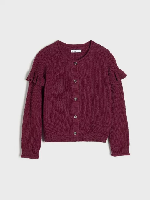Sinsay Ruffle Sleeves Knitted Cardigan Deep Burgundy