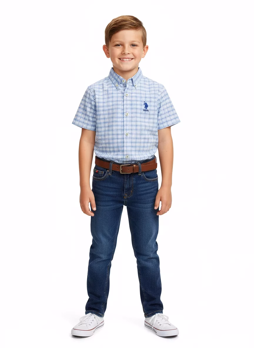 U.S Polo Assn Boy’s Cotton Shirt Sky/White Check