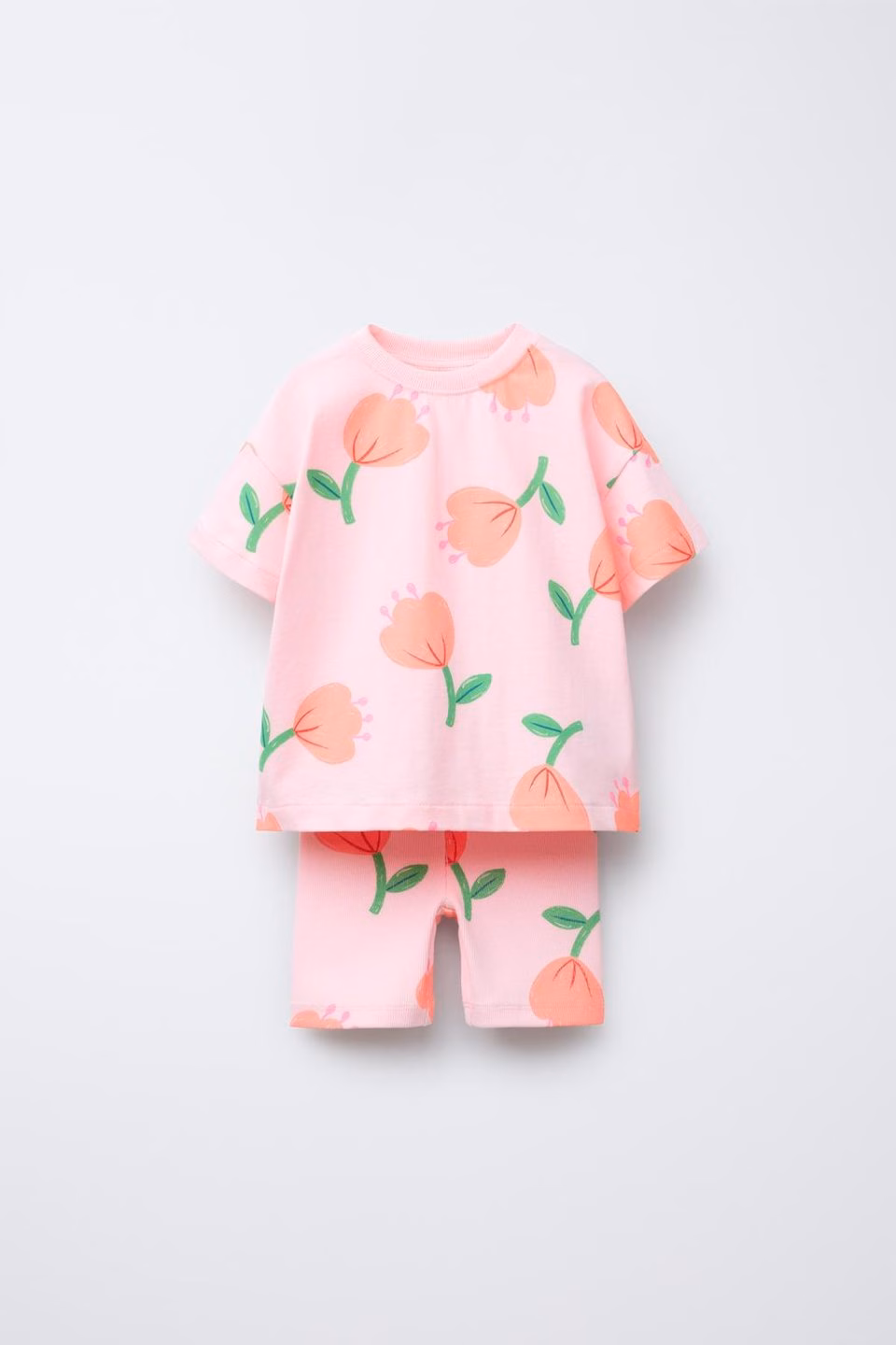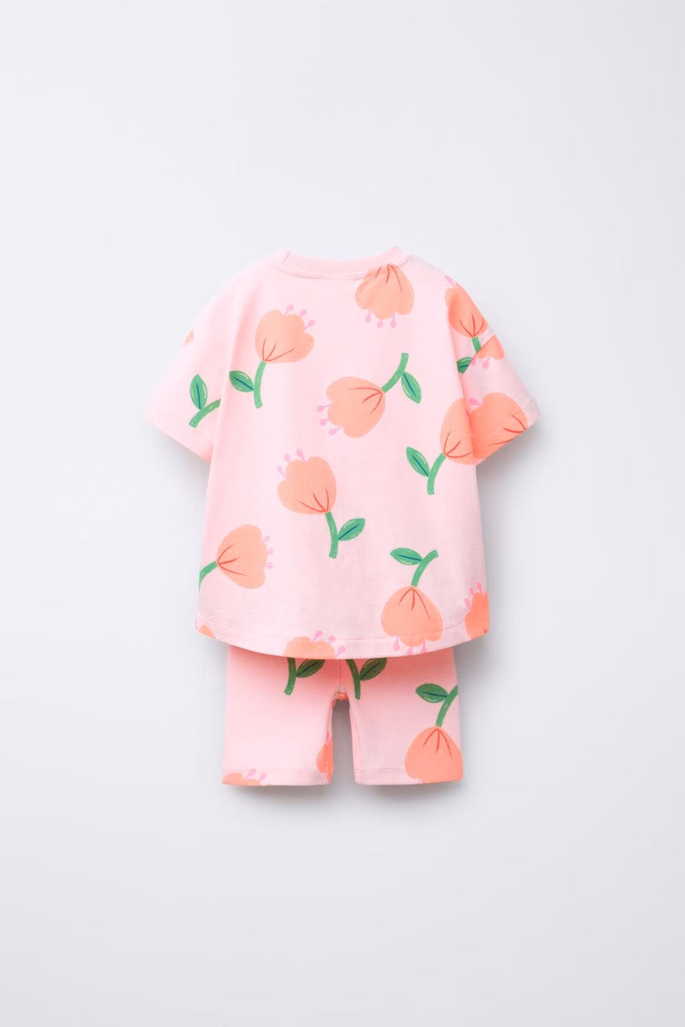ZARA PRINTED T-SHIRT AND BIKER LEGGINGS SET PINK