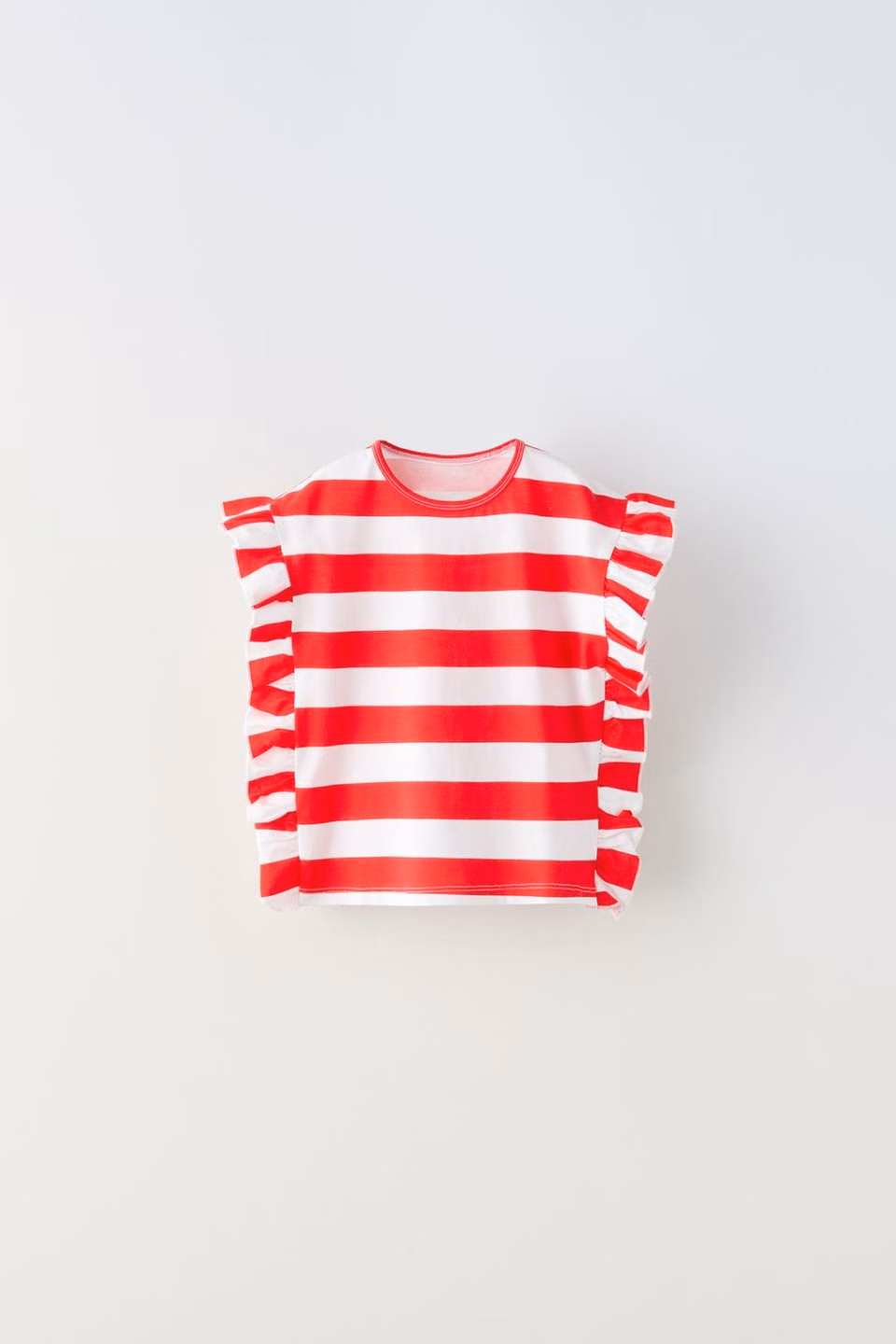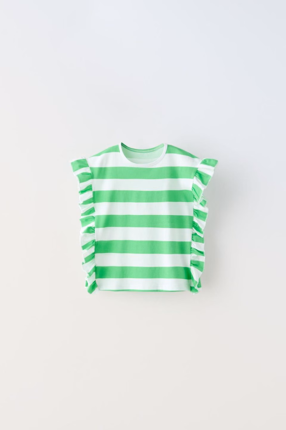 ZARA STRIPED T-SHIRT WITH RUFFLE TRIMS